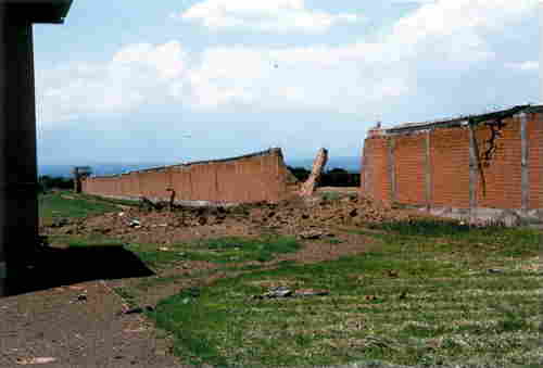 were destroyed. Window panes of the surrounding buildings were broken from the