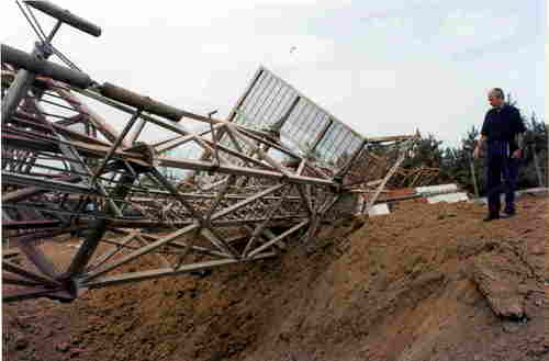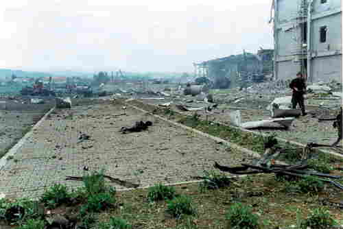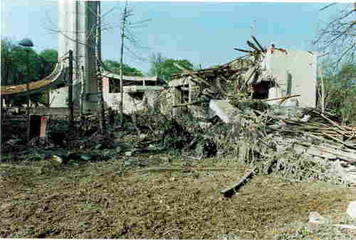 missile (aircraft bomb) at the antenna pole and mobile telephony equipment