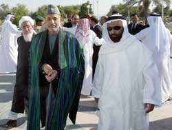 Karzai, left, missed his proclamation celebration to attend the funeral of Sheikh Zayed (AFP)