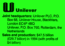 #1 world producer of ice cream; #1 world producer of margarine; one of the top five world exporters of dry milk powder; #1 European tea seller; #2 or #3 world producer of soaps and detergents; one of the top five world crushers of palm oil and palm kernel; one of world's largest producers of olive oil.