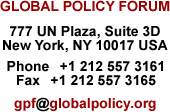 FAIR USE NOTICE: This page contains copyrighted material the use of which has not been specifically authorized by the copyright owner. Global Policy Forum distributes this material without profit to those who have expressed a prior interest in receiving the included information for research and educational purposes. We believe this constitutes a fair use of any such copyrighted material as provided for in 17 U.S.C § 107. If you wish to use copyrighted material from this site for purposes of your own that go beyond fair use, you must obtain permission from the copyright owner.